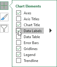 4. On the right of the chart, click + and enable Data Labels.