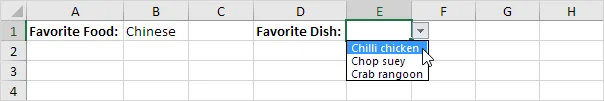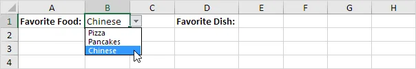 Explanation: The INDIRECT function converts a text into a valid cell reference. Suppose the user picks Chinese from the first drop-down list. =INDIRECT($B$1) returns the Chinese reference. As a result, the second drop-down menu lists Chinese items.