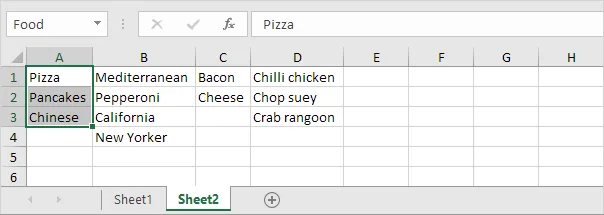| Food | A1:A3 |