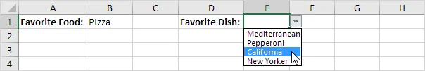 The user selects Pizza from a drop-down list.