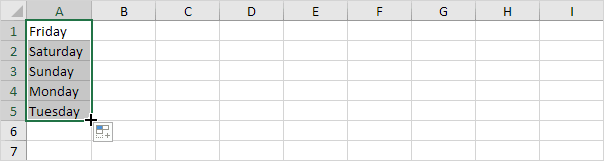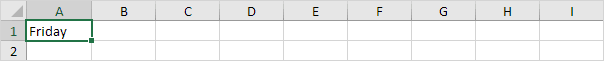 7. Enter Friday into cell A1.