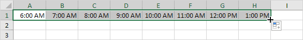15. Click cell A1 then drag the corner square across. AutoFill automatically fills in the times.