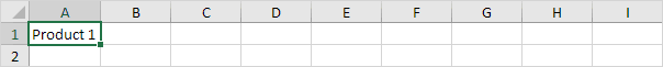 5. Enter Product 1 into cell A1.