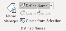 1. Click the Define Name option from the Defined Names group inside the Formulas tab.