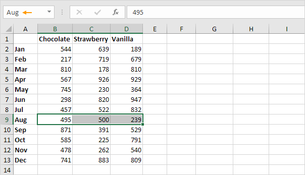 Note: Try it yourself. Download the Excel file, set up the named ranges on Sheet2, and easily find any value in the two-dimensional range.